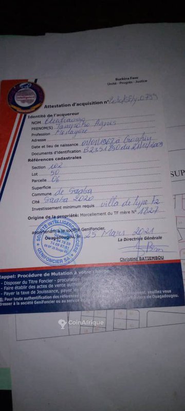 Un terrain de 285m² en vente a saaba juste a coté de la citée d'abdoul service international